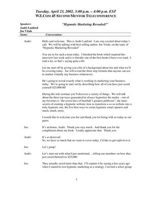 Joe Vitale Hypnotic Marketing Revealed Teleconference 22 Pages