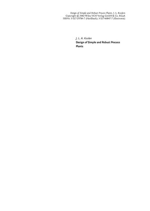 Design Of Simple And Robust Process Plant J L A Koolen