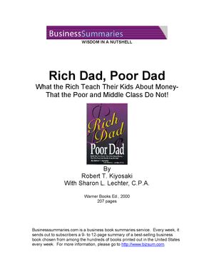 Robert Kiyosaki Rich Dad Poor Dad Business Summary