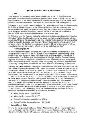 Optimal Nutrition Vs The Atkins Diet