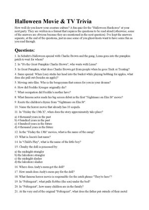 Halloween Movie Tv Trivia