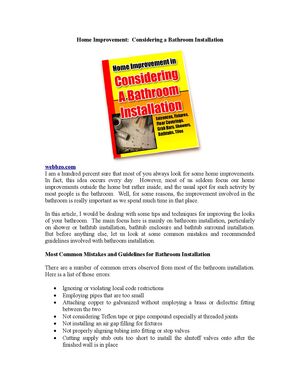 Home Improvement Considering A Bathroom Installation