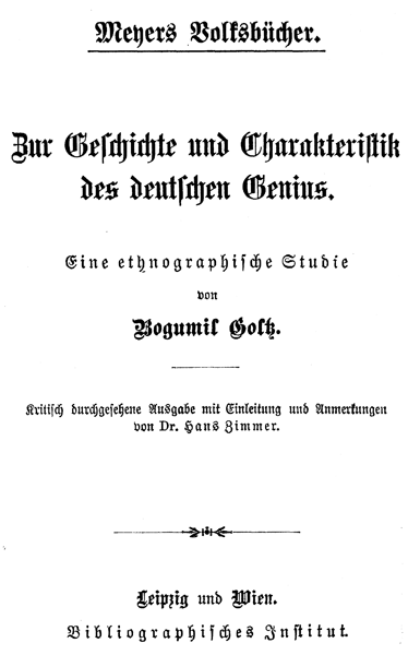 Zur Geschichte Und Charakteristik Des Deutschen Genius
