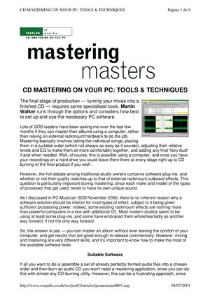 Ebook Sound Engineering Tutorials From Sound On Sound Feature Cd Mastering On Your Pc