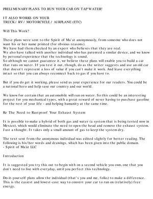 Garret Water Carbeurator Plans For Water Powered Vehicles