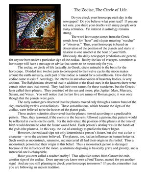 The Zodiac The Circle Of Life Article Author Beatrice Public Schools