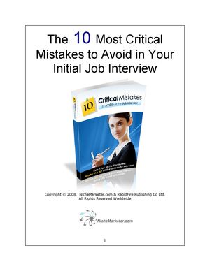 The 10 Most Critical Mistakes To Avoid In Your Initial Job Interview